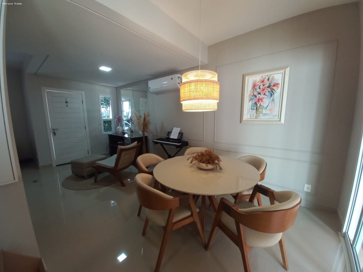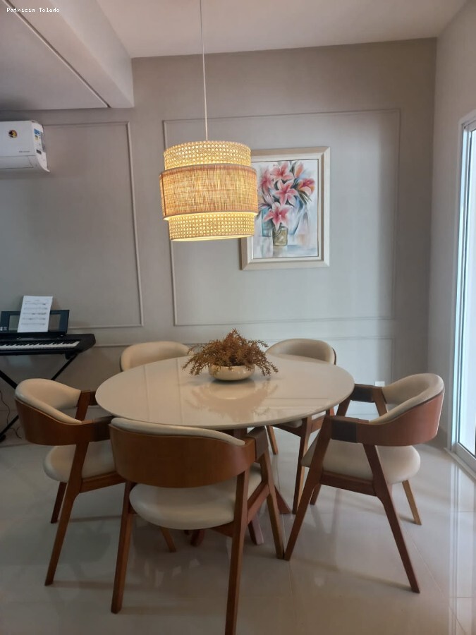 Sobrado com um living espaçoso, ambientes integrados, lavabo, cozinha planejada e área de serviço. Esse sobrado conta com 3 quartos, sendo 1 suíte, armários planejados em todos os cômodos bem como ar condicionado nos quartos e na sala, muito iluminado.
