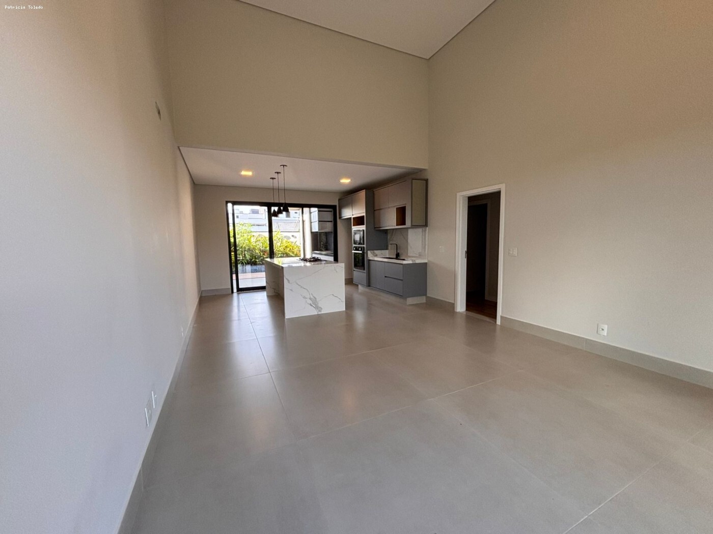 Living com pé-direito duplo, integrando sala de TV/estar e sala de jantar