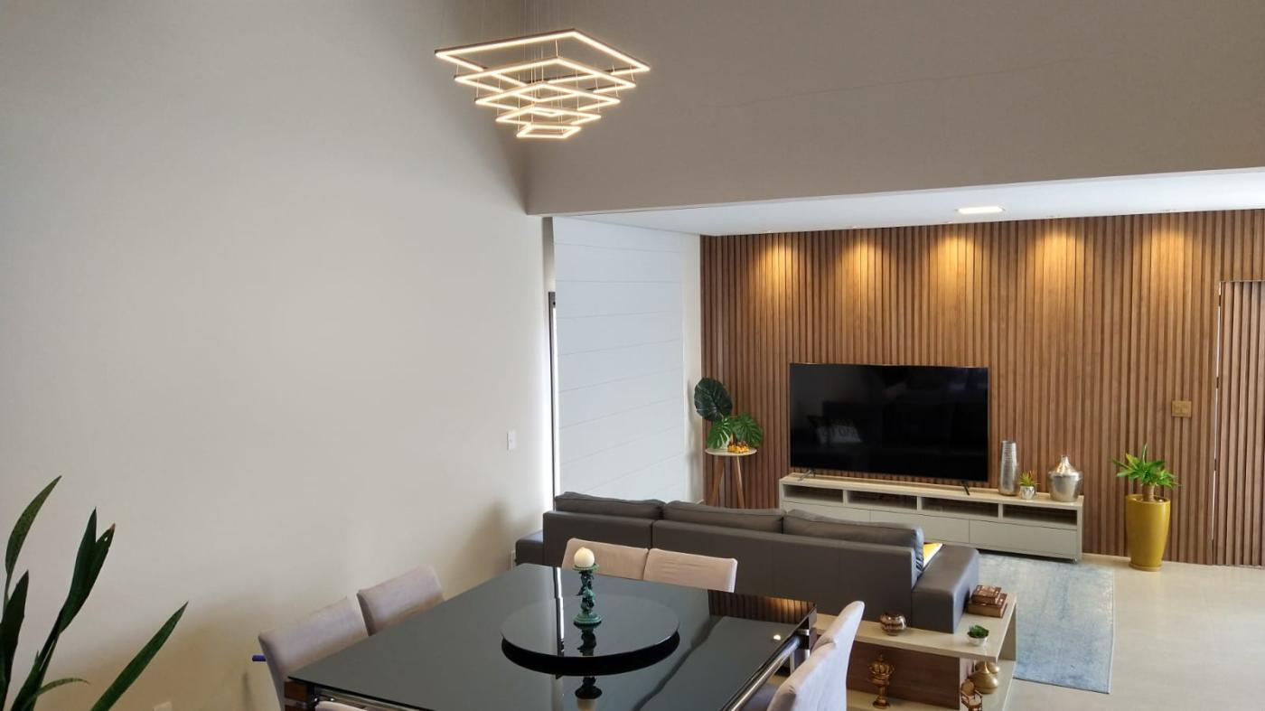 A bela sala de 3 ambientes é o cenário perfeito para momentos especiais, oferecendo um ambiente acolhedor e elegante.
